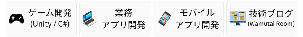 Unity/C#を中心に、ゲーム開発と業務アプリ開発の両軸で活動しています。