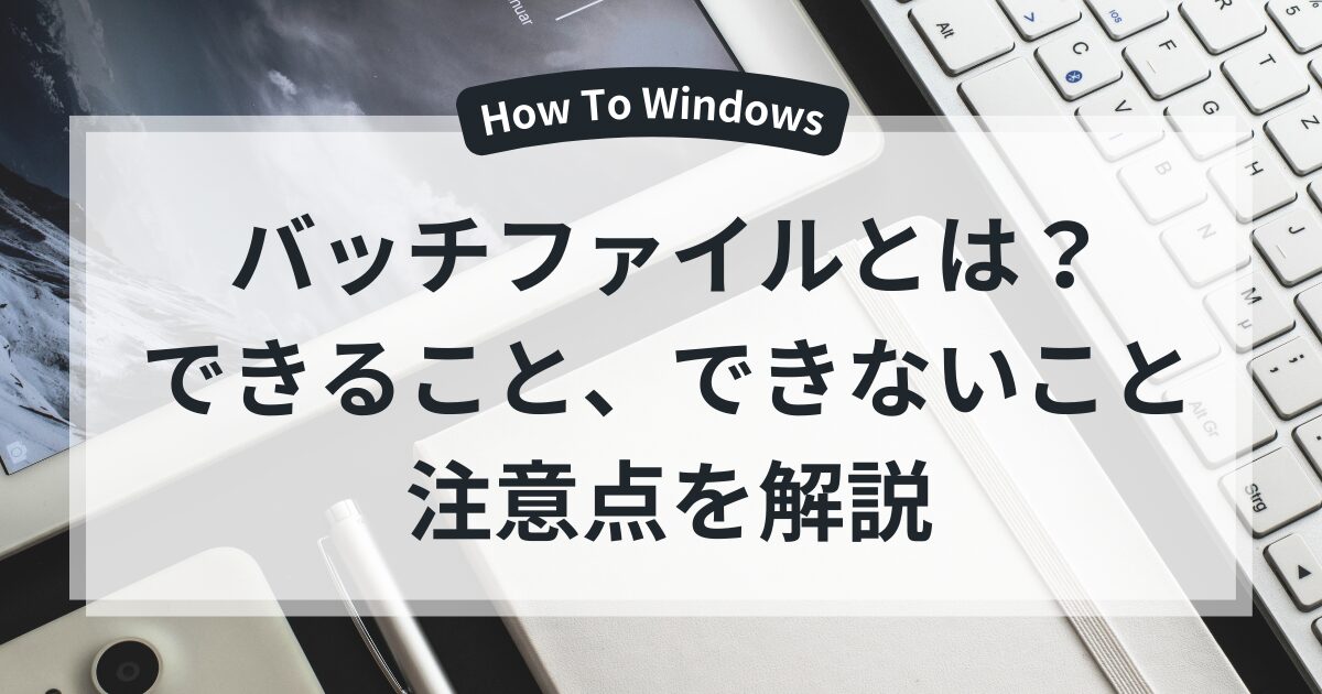 BATファイルとは、Windowsのコマンドプロンプトで実行できる命令をまとめたテキストファイルです。拡張子は 「.bat」です。