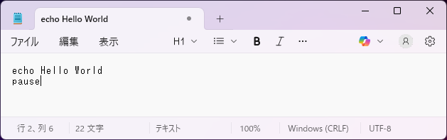 BATファイルはダブルクリックした瞬間に処理が始まります。